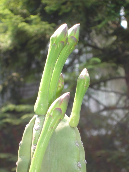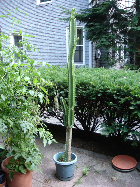 Steve inherited this cactus from his father. He’s been tending it carefully for years, lovingly packing it when he moved it from New Jersey. It winters inside, summers outside, and gets watered when it rains in Arizona. About five or six years ago the cactus, amazingly, started to flower–one or two for one night, each. This year the cactus was so happy it grew six potential blossoms.