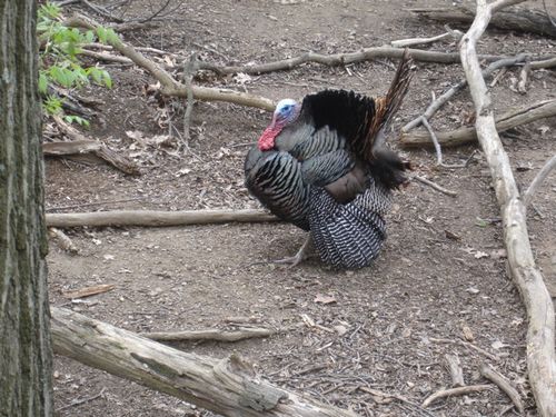 Wild turkey in the children's zoo. There are lots of wild turkeys around Pittsburgh but I've never seen one strutting quite like this.