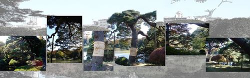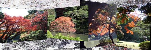 The next book I make will be about Japanese Gardens, at least the ones I've visited. I'm still enchanted with the gardens. I would like to return to Japan and remain from October through April or May so I could see the gardens at the most interesting times. It probably won't happen, but working on another book lets me enjoy the photos and memories all over again. Here are three collages using some of the photos from Rikugien, the Tokyo garden where I met the origami lady. Most of these photos were not posted before.
