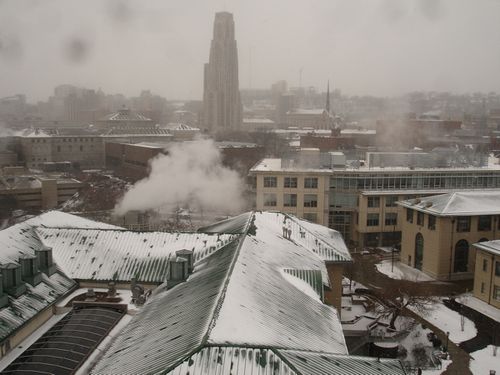 Looking at some of the Carnegie Mellon campus with the Pitt Cathedral of Learning in the background.