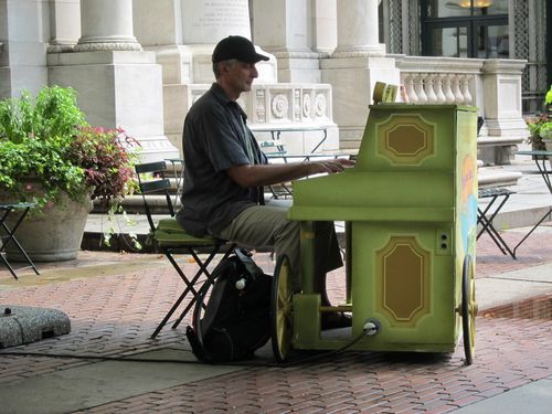Sybille and I had lunch at a lovely Moroccan restaurant then walked through Bryant Park and spent some time listening to the piano player. It's lovely and strange to have a piano in a park.