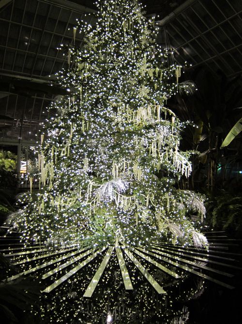 Phipps is one of my favorite places in Pittsburgh, second only to the tunnel under the convention center. They are open until 10 at night every night this month (Christmas excepted, I think). Last night Robin, Steve, Charna and I went to see what it looked like. We were charmed. I took a few pictures, but I want to return, alone for better picture taking, at dusk. I'd like a little outside light with all the other lights.
