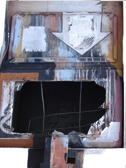 Picture, phase 2 Posted on November 8, 2011 by ruthek It was a newspaper box, vandalized and burned. I want to use it for my next book. Do you think it's less recognizable now?