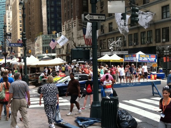 Next I tried to go tp the Whitney. There was a line around the block, it was raining hard and I was wet. I got on the bus and went back to the apartment. After the sun came out I went up to East Harlem to see the tower built for the Giglio Di Sant Antonio Feast. I’ll have pictures after I get home. In the meantime here is another picture from the street fair.