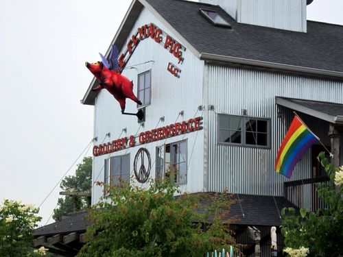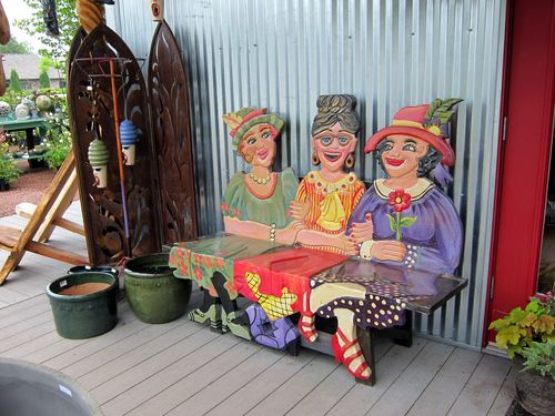Being teacher for the week was a great pleasure and I was sorry to see it end. We left Anita’s about 11 am and drove south on the scenic route, sailing past the ice cream store but stopping at The Flying Pig, a combined garden center and gallery of outsider art, great things to look at and charming ladies running the it. What a great place!
