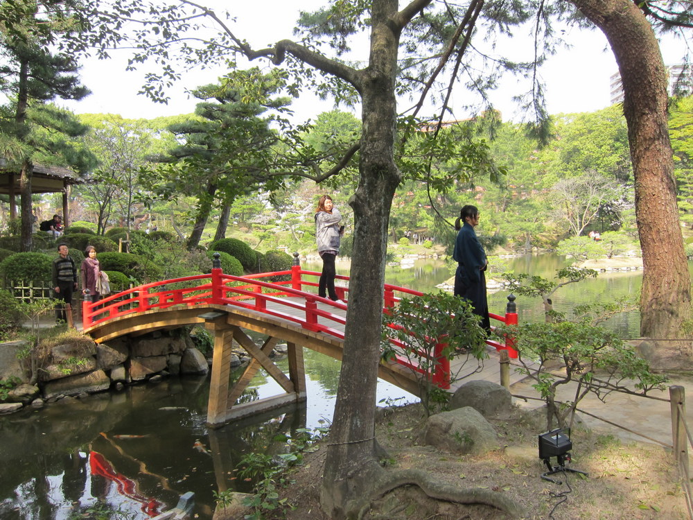 I came to Hiroshima to see only one garden, Shukkeien, which I got to on the day I arrived. It was very crowded, being Saturday and being filled with cherry blossoms. When I walked in I unfortunately picked up a volunteer guide who thought he spoke English. I tried several times to politely get rid of him with no success. Finally, after walking around for some time, I pleaded the need to sit down and was able to tell him I could manage by myself. I realize I like being by myself in a place where I want to absorb my surroundings and to photograph.