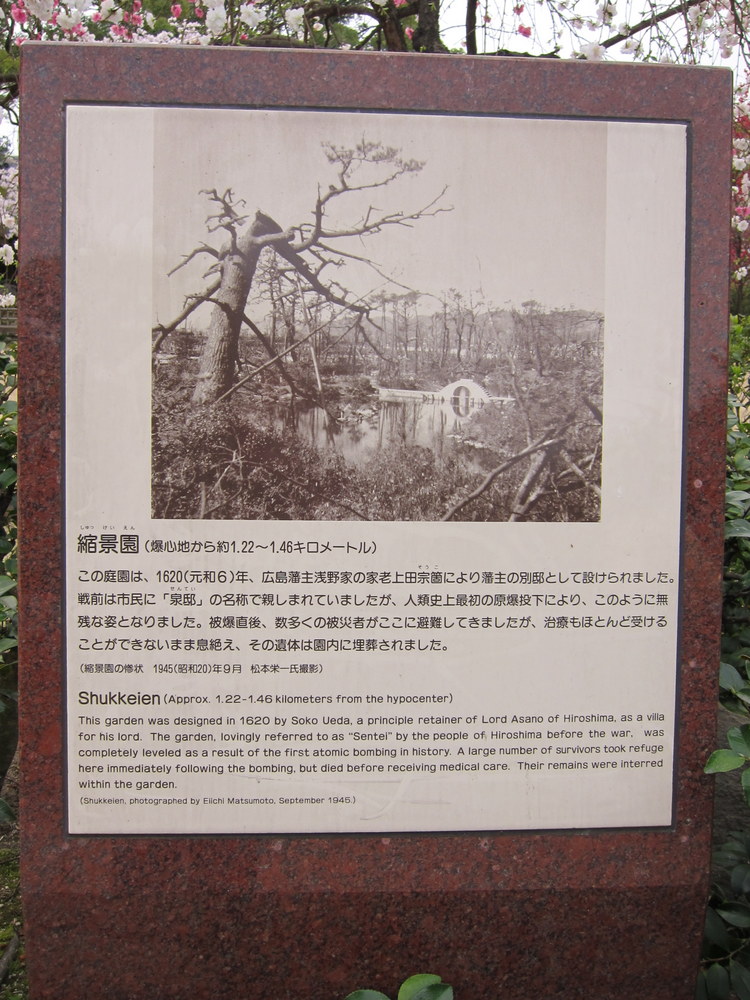 The garden was destroyed by the A bomb, with the exception of this stone bridge.