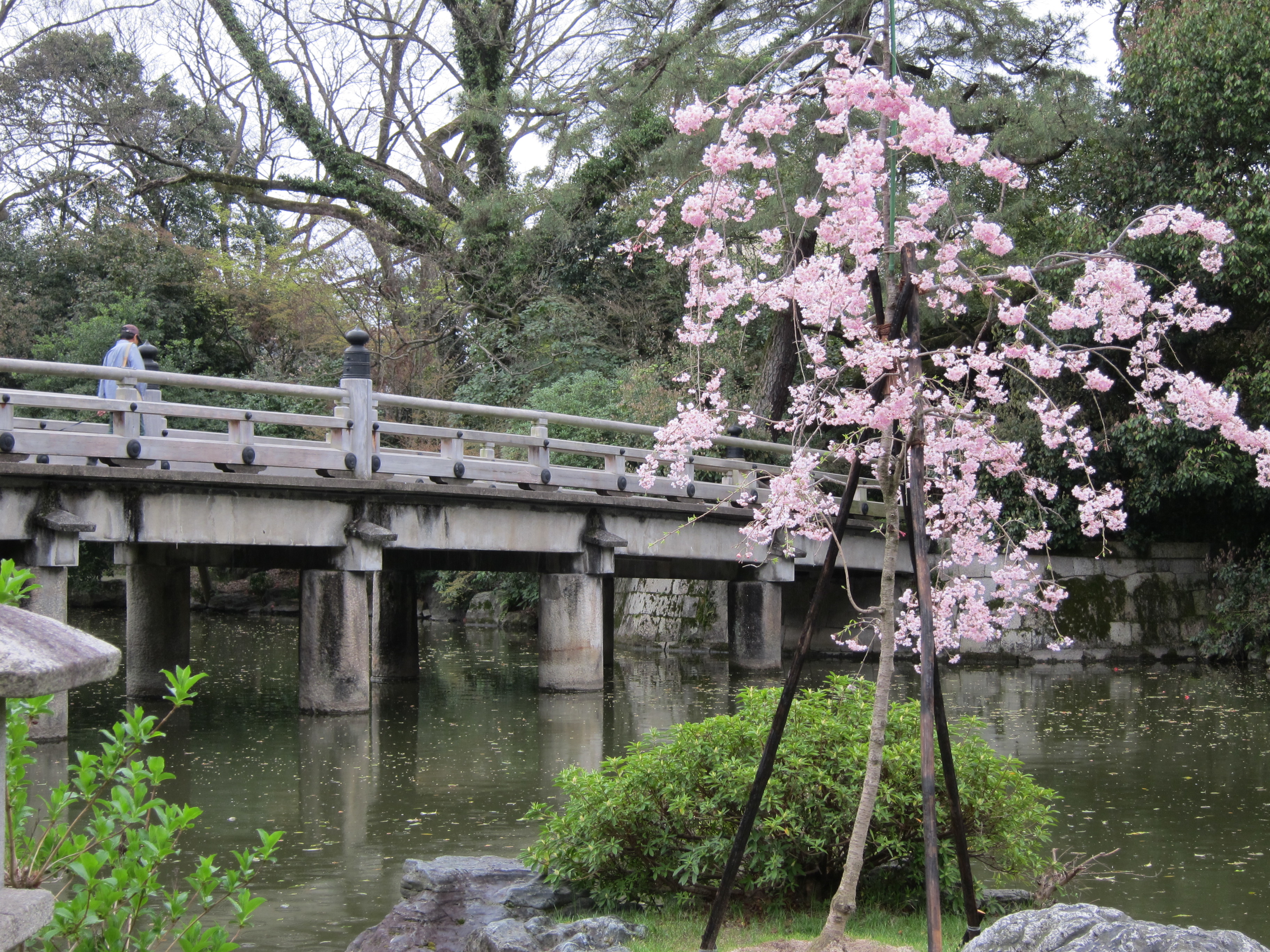 Sento Palace is part of the Kyoto Imperial Palace. Tours have to be arranged in advance, which I did on Monday. You don’t get to see inside the palace, which was created for retired emperors. The tour took us around the garden, not as great as the garden inside the Imperial Palace walls, but very nice, indeed. There were about 50 of us on the tour and we had a guide who spoke only in Japanese, so I was able to ignore her, and a keeper who remained at the back of the group to make sure no one stayed behind. At one point we had to cross a small stream by walking on rocks and I couldn’t do it. He saw my distress and motioned me to wait, then helped me get across. Very nice.