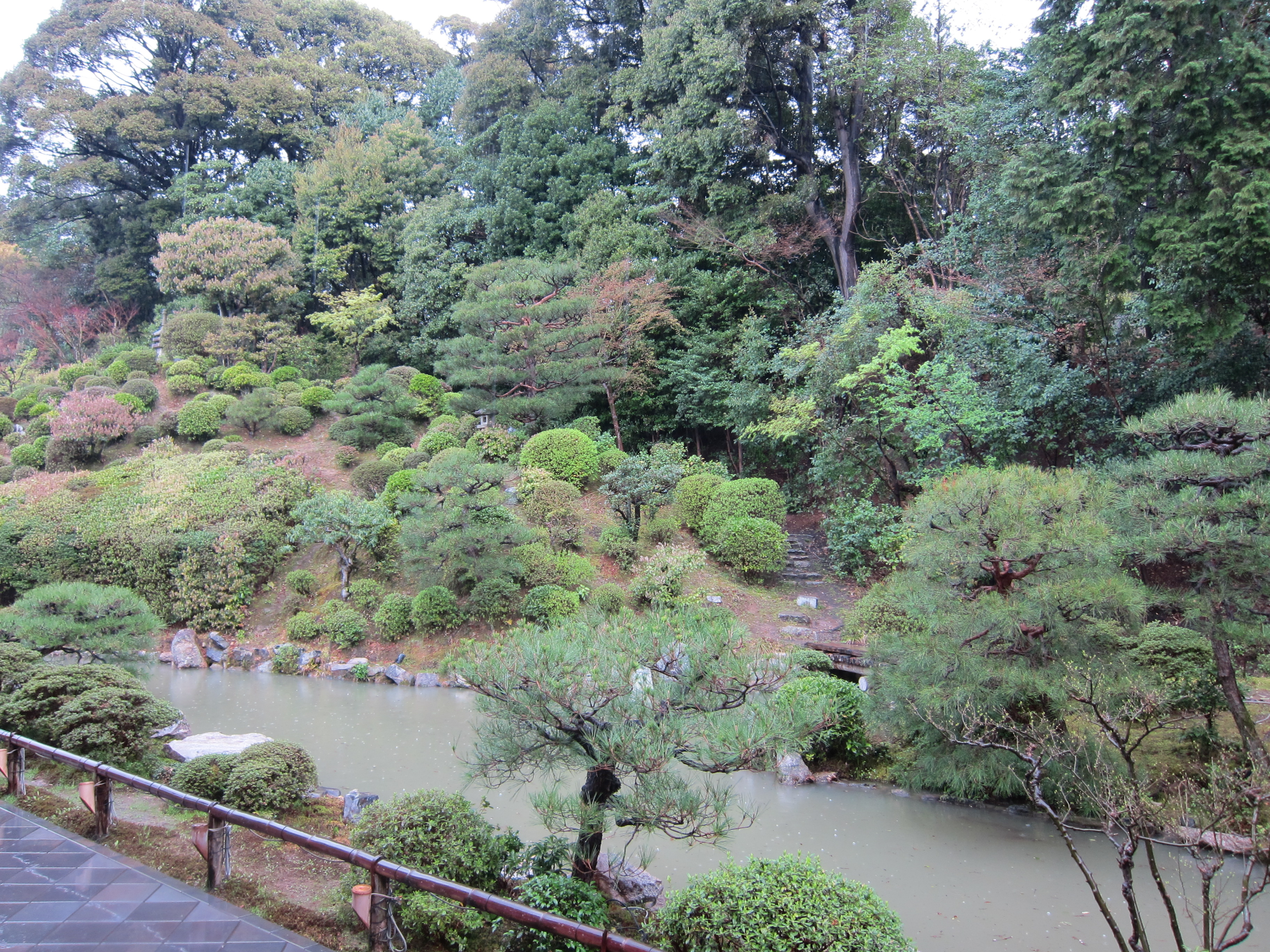 I intended to return to the inner garden of the palace after about 10 am, hoping the rains would keep people away. But the rain became serious before the time arrived so I boarded a bus and headed for the Kyoto National Museum.