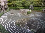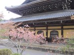 My room was lovely and orderly, as you can see and overlooked a garden that was probably wonderful in late spring and summer. Dinner was the special shojin ryori, Buddhist vegan cuisine, which is supposed to have five flavors, five cooking methods and five colors, a grilled dish, a deep fried dish, a pickled dish, a tofu dish and a soup dish. I don’t remember what was grilled, if anything was, the deep fried dish was vegetable tempura, there were several kinds of pickles and at least three kinds of tofu: freeze-dried tofu, regular tofu, and the best one, tofu boiled with sesame seeds. I liked that so much, I might try to do it at home.